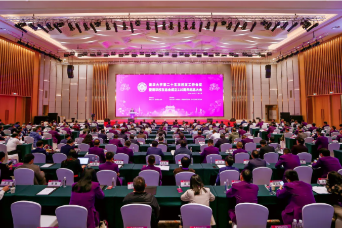 11月18日,清华大学第二十五次校友工作会议暨清华校友总会成立110周年纪念大会在广州召开。200余位来自全球各地的校友代表欢聚一堂,研讨校友工作,共话母校发展。清华大学校长、清华校友总会会长王希勤,清华大学校务委员会副主任、校友总会副会长史宗恺、吉俊民,校务委员会副主任李一兵,校务委员会副主任、校友总会副会长王岩,清华大学校友工作办公室主任、清华校友总会秘书长唐杰及学校相关部处负责人出席。广州校友会会长贺臻致欢迎辞。史宗恺主持会议。